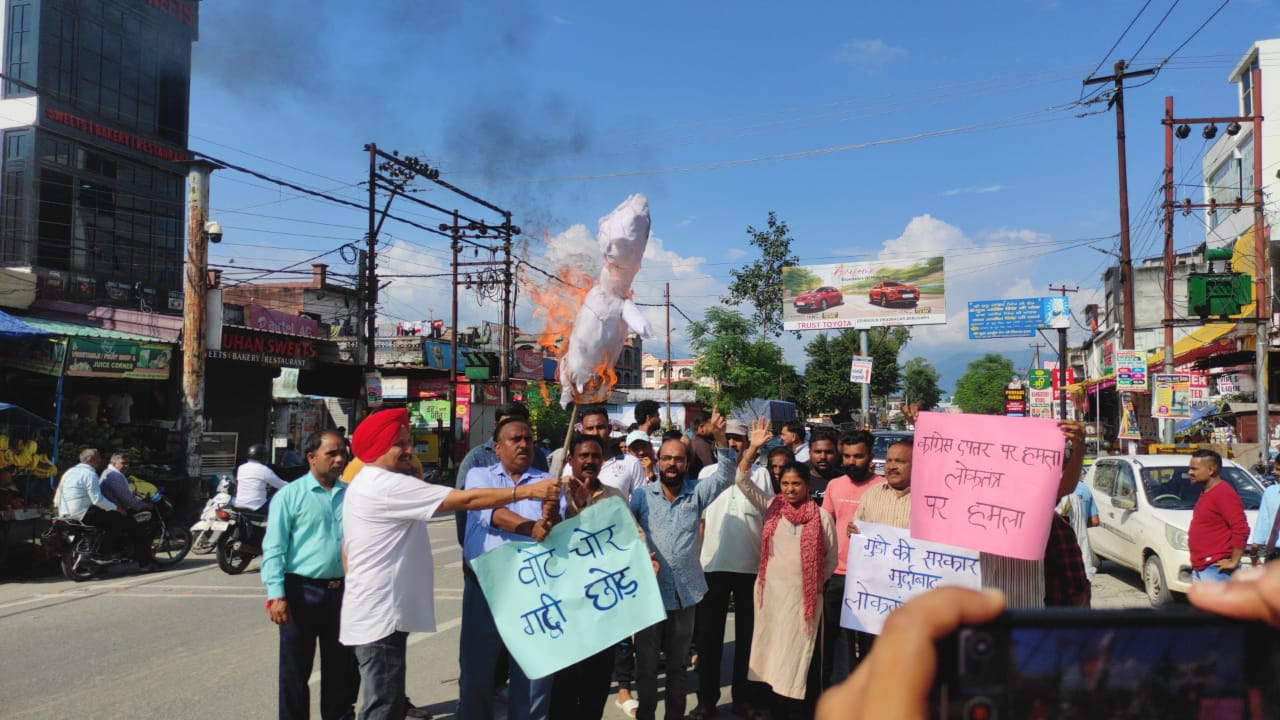 बिहार के कांग्रेस मुख्यालय सदाकत आश्रम पर हुए बीजेपी हमले को लेकर शनिवार को विकासनगर में कांग्रेस पार्टी ने जोरदार विरोध-प्रदर्शन किया। इस दौरान कांग्रेस के सोशल मीडिया सेल के सदस्यों ने बीजेपी का पुतला फूंककर अपना आक्रोश व्यक्त किया। पूर्व निर्धारित कार्यक्रम के अनुसार कांग्रेस सोशल मीडिया टीम के सदस्य दोपहर लगभग 3 बजे बाबूगढ़ चुंगी पर एकत्र हुए l इस मौके पर कांग्रेस सोशल मीडिया सेल के प्रदेश उपाध्यक्ष सरदार बलजीत सिंह ने कहा कि बिहार में राहुल गांधी जी के नेतृत्व में चल रही कांग्रेस की वोटर अधिकार यात्रा की सफलता से भारतीय जनता पार्टी बुरी तरह से बौखला चुकी है l इसी बौखलाहट में बीजेपी के नेताओं ने गुंडो को साथ लेकर कांग्रेस के प्रदेश मुख्यालय सदाकत आश्रम पर हमला कर दिया जिसमें अनेक कांग्रेसी कार्यकर्ताओं को चोटे आई और वहां पर उन्होंने तोड़फोड़ भी की l कांग्रेस के कार्यकर्ताओं ने बड़ी बहादुरी से इसका जवाब दिया l